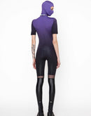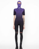 This suit features an involve elastic frantic that provides exceptional comfort for the wearer. The printing has a gradient which goes from purple into black.