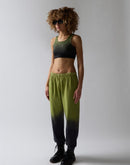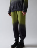 Luxury Ahtleisure pants with elastic waist and ankle. This item has been made at our sewing company in Veneto, Italy using the most high end washing techniques giving it a gradient shade that goes from from acid green into purple.