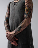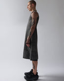 V Neck and sleeveless denim dress with Gauhar lettering embroidery and leather patch on the back. This item has been made at our supplier in Veneto, Italy. The acid wash processing used to craft the product gives a new shade to the product.