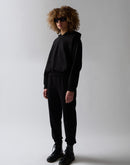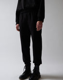 Luxury Ahtleisure black pants with elastic waist and ankle. This item has been crafted using state of the art washing techniques resulting in a detailed black finish. The washing treatment has been done at our selected supplier in Veneto, Italy.
