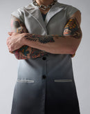 Gradient faded grey vest jacket with 3 button closure and 2 front pockets.