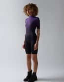 This suit features an involve elastic frantic that provides exceptional comfort for the wearer. The printing has a gradient which goes from purple into black. Model wears size S and is 175cm