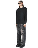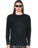 LONG SLEEVES T-SHIRT FEATURING ACID WASH TECHNIQUE WITH ALLOVER LASERED TREATMENT ON THE CHEST