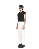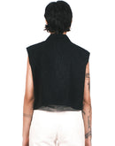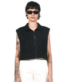 BLACK CROP TOP FEATURING DERMATEX TECHNIQUE WITH METAL ZIPPER AND LASERED ALLOVER PRINT