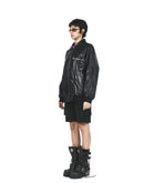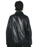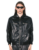 BLACK ECO LEATHER BOMBER JACKET FEATURING DERMATEX TECHNIQUE AND TWO ZIPPER POCKETS ON THE CHEST