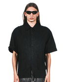 BLACK SHORT SLEEVES SAND LASERED SHIRT
