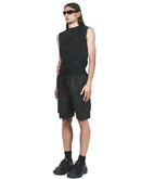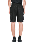 BLACK SHORTS FEATURING DOUBLE DERMATEX WASH TECHNIQUE WITH TWO ZIPPERED SIDE POCKETS AND AN ELASTICATED WAIST BAND