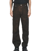 DARK BROWN CARGO PANTS FEATURING DERMATEX TECHNIQUE WITH BIG HAND POCKETS AND METAL DETAILS