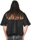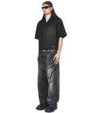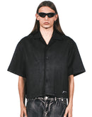 BLACK ECO LEATHER SUEDE SHIRT FEATURING DOUBLE DERMATEX TECHNIQUE AND A GAUHAR ALI EMBROIDERED PATCH