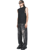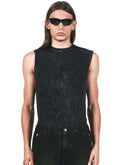 BLACK COTTON TANK T-SHIRT FEATURING ACID WASH DERMATEX TECHNIQUE WITH GAUHAR ALI LASERED LOGO ON THE CHEST