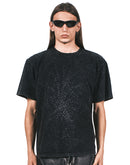 BLACK COTTON T-SHIRT FEATURING SAND ALLOVER LASERED PRINT