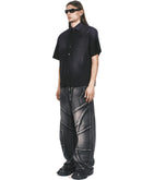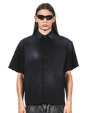 BLACK SHORT SLEEVES SHIRT FEATURING PURPLE DERMATEX TECHNIQUE WITH ONE SIDE POCKET ON THE CHEST