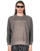 GREY COTTON CREWNECK FEATURING DERMATEX TECHNIQUE WITH RAVER CHIC LASERED LOGO