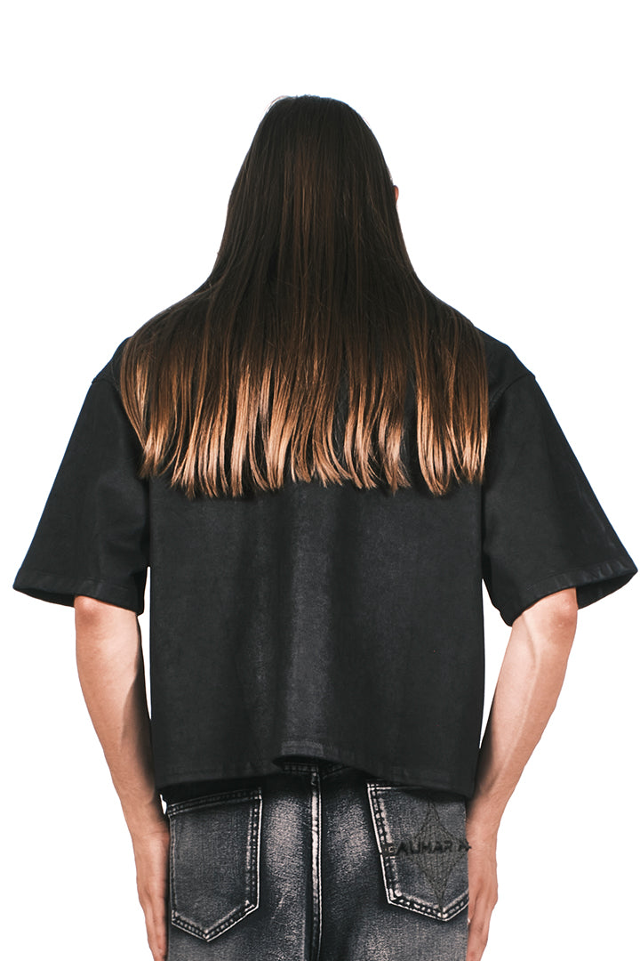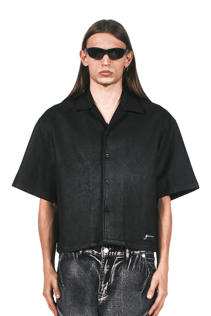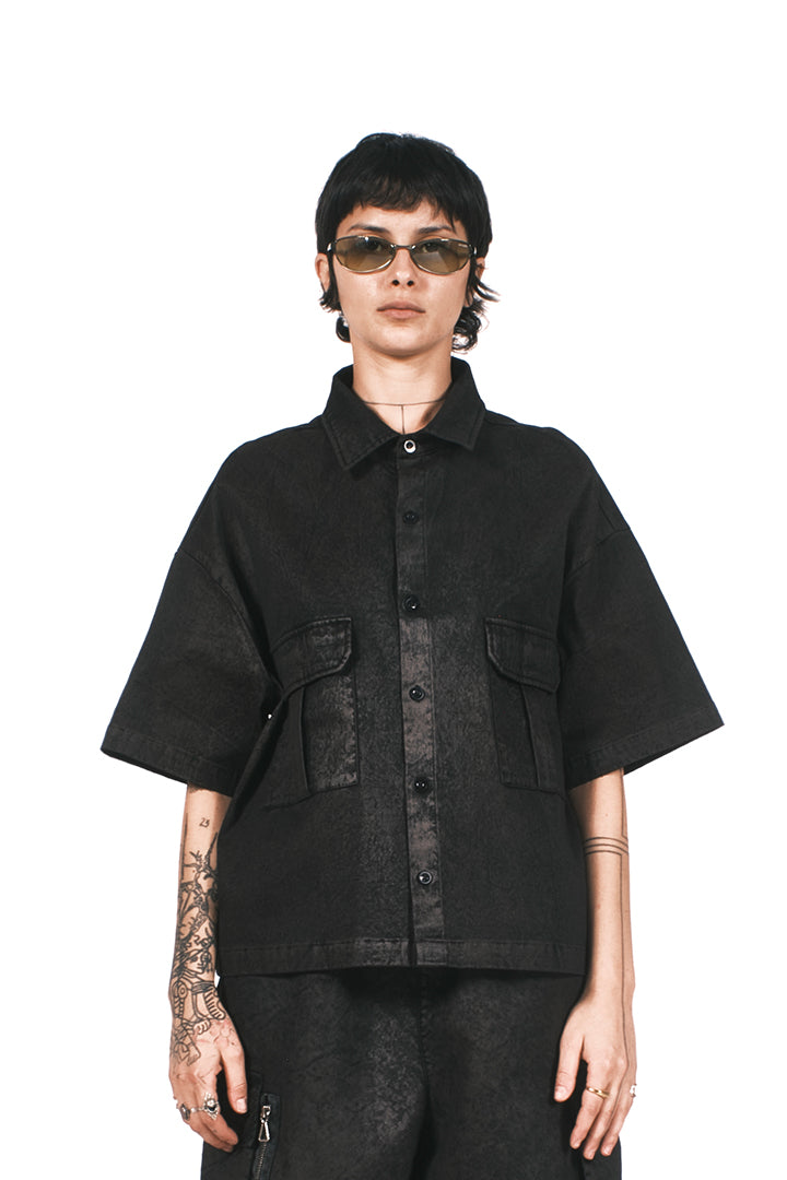 SHORT SLEEVES DENIM JACKET FEATURING DOUBLE DERMATEX TECHNIQUE WITH TWO BIG POCKETS