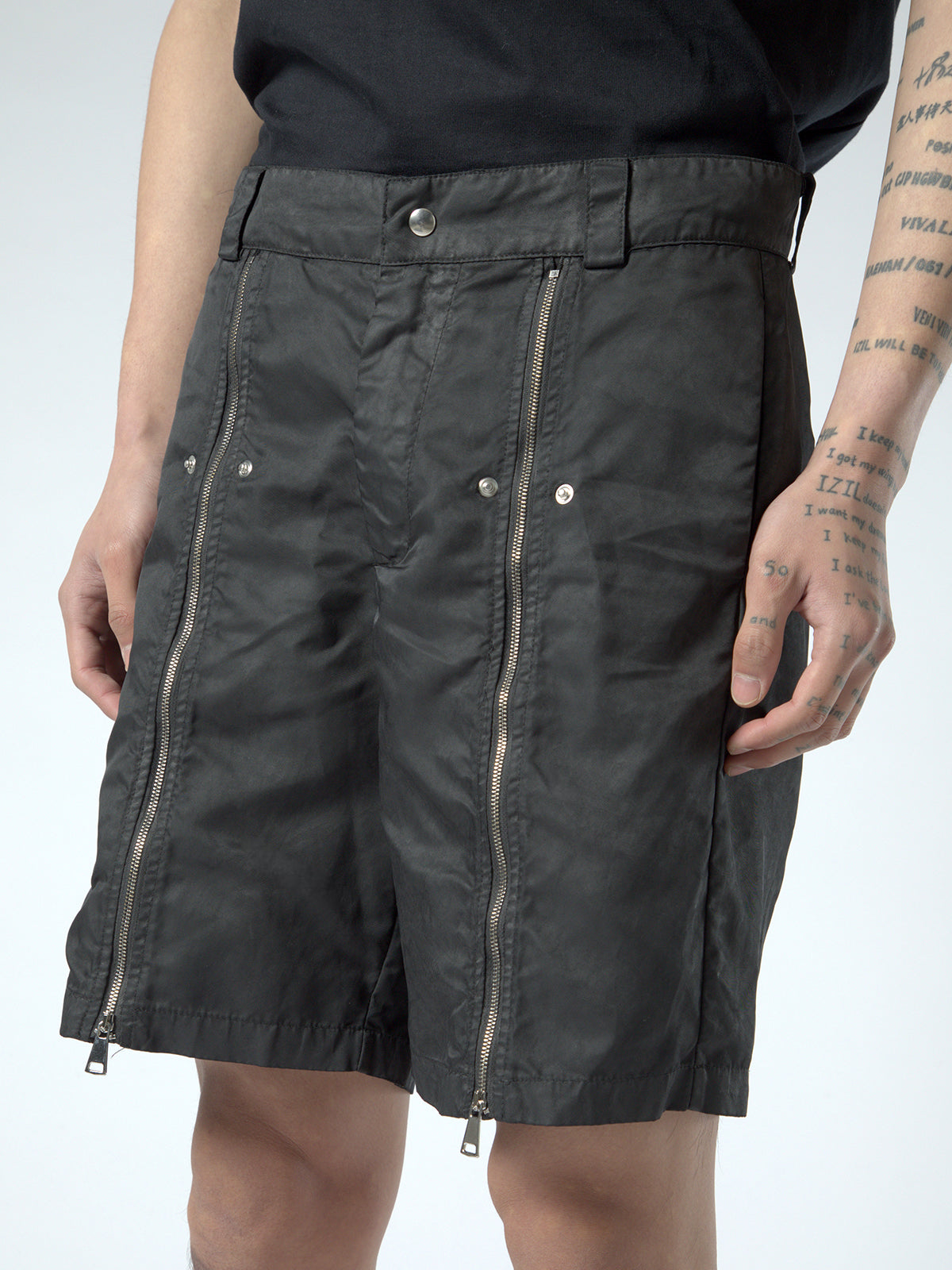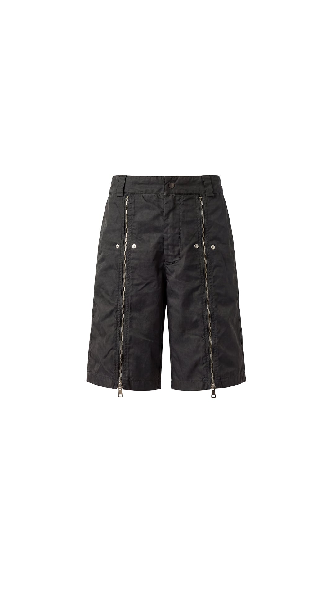 Tailored utility zippered shorts with a structured waistband and clean rear pockets. Designed to balance functional construction with contemporary proportion.