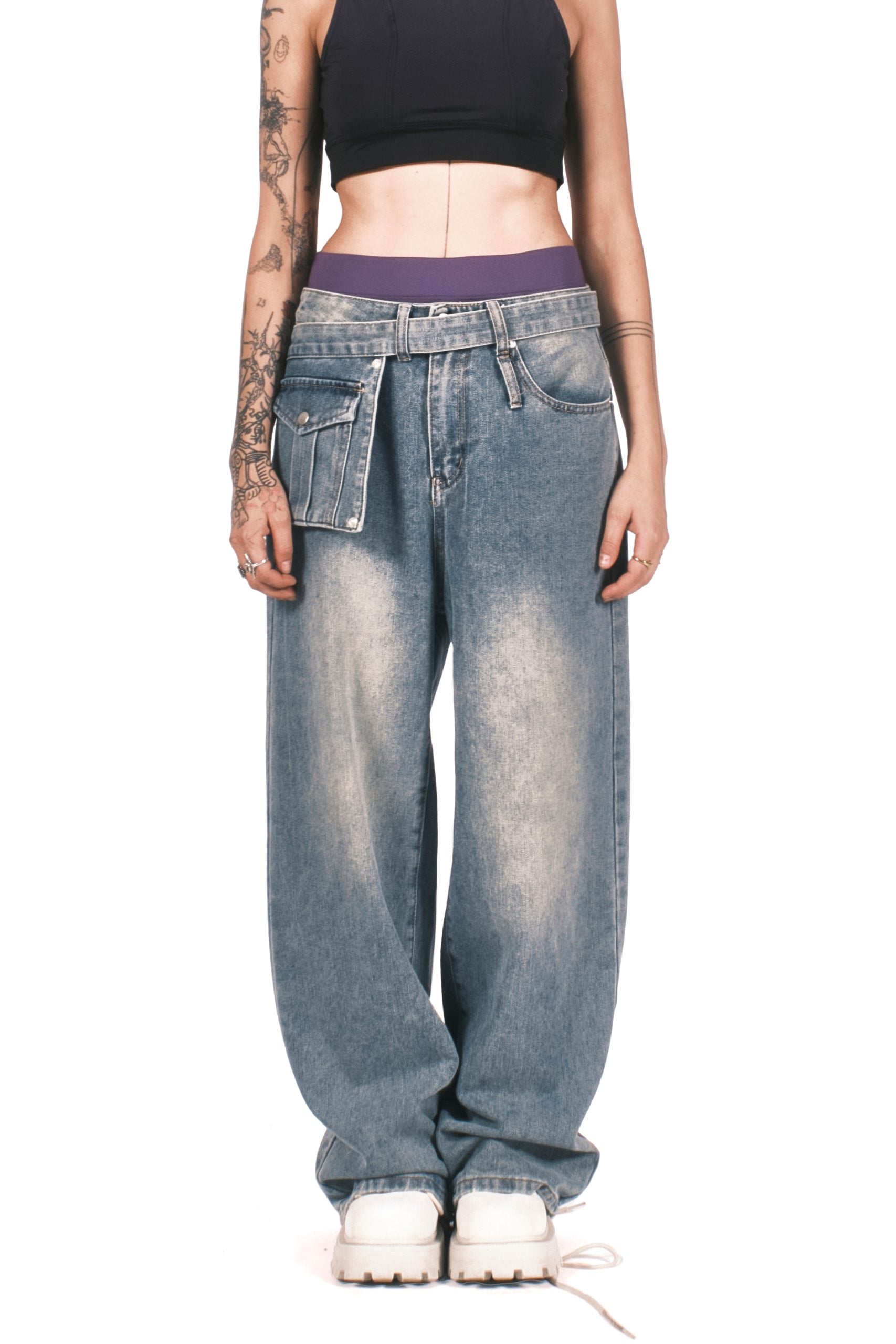 ACID STONE WASH LIGHT BLUE DENIM PANTS